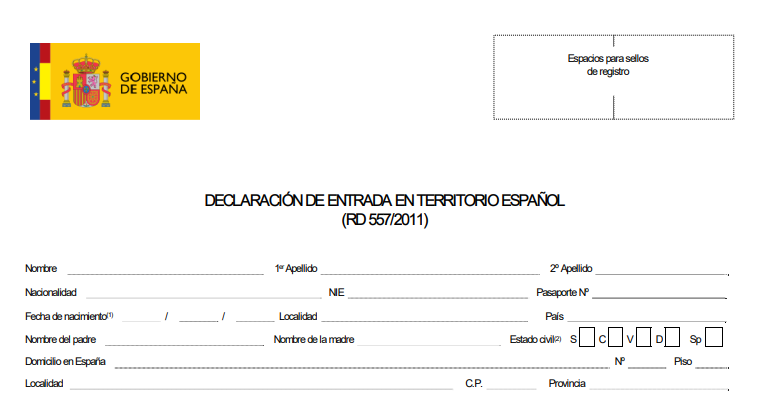 ДЕКЛАРИРУЮ перед испанскими властями мой въезд на испанскую территорию