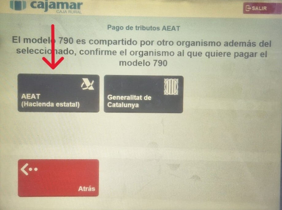 4. Так как модель 790 делят между собой разные госучреждения, то тут предлагают выбрать, куда конкретно пойдет сбор. Нажмите на AEAT / Налоговая